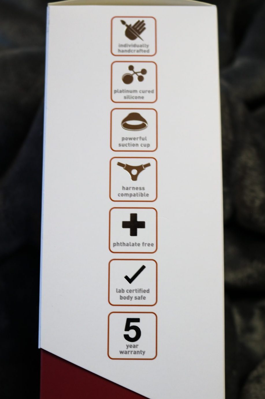 To start, the packaging is beautiful, and to get to the dildo, all I have to do is pull the boxes apart and voila! Dildo! I will admit, I did get a little confused with the tab at the bottom of the box. I’m still unsure why that exists (pictured below). Does anyone know? I’m curious.